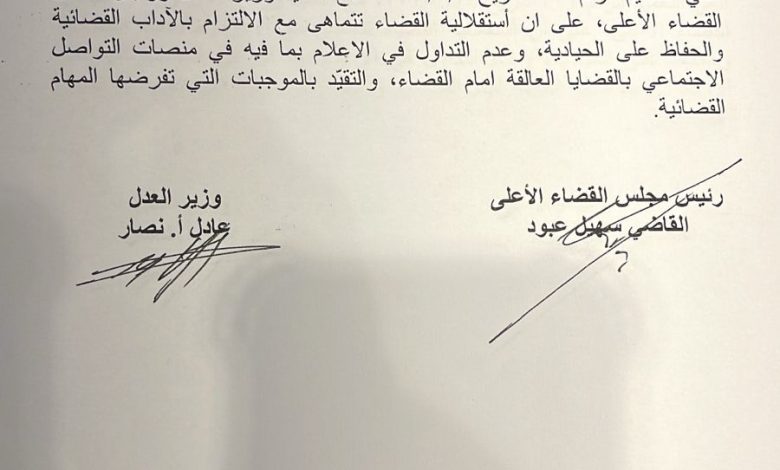قرار من وزير العدل لالغاء التعميم الذي يمنع القضاة بالظهور على الاعلام دون اذن مسبق