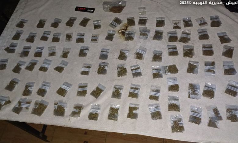 • توقيف المواطنَين (ن.ح.) و(ط.ف.) عند حاجز المدفون لنقلهما كمية كبيرة من مادة الماريجوانا وكمية من حشيشة الكيف.