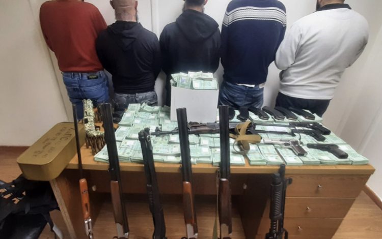 بتفتيشهم وتفتيش منازلهم، تمّ ضبط بندقية كلاشينكوف، وأربعة مسدّسات حربية، وبومب أكشن عدد 2، وأربع بنادق صيد، ومبلغ /1,686,530,000/ ل.ل. و/5964/ دولارًا أميركيًّا.